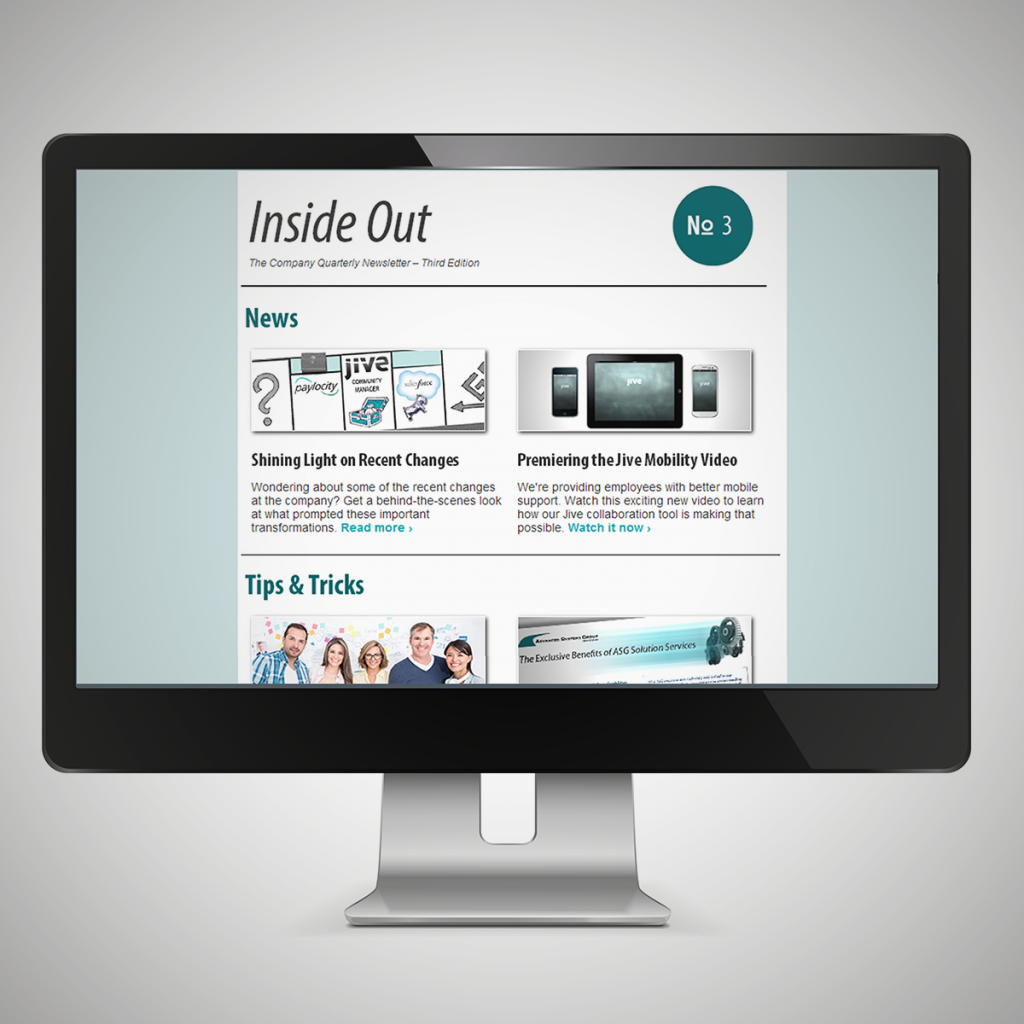 I wholly owned the newsletter, from the copywriting, HTML, graphics, layout, and design. (Employee and company names have been changed.)